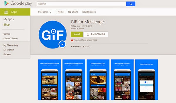 من التطبيقات كذلك التي تضيف الكثير من المرح لفايسبوك ماسنجر تطبيق \”GIF\” الذي يوفر لك مجموعة من الصور المتحركة الجاهزة في مختلف الموضوعات، يمكنك مشاركتها مع أصدقائك بشكل سهل وسلس .