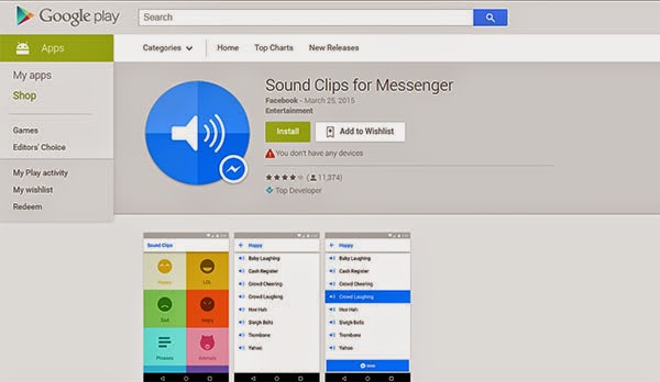 على خلاف كل التطبيقات المذكورة أعلاه والمتعلقة أساسا بالصور ، هذا التطبيق هو مختلف قليلا عنها فهو خاص بالصوت ، إذ يتضمن مجموعة من عشرات الأصوات المسجلة مسبقا الجاهزة للاستخدام ، كما أنها مقسمة ومرتبة حسب فئات:الضحك،الحيوانات، العبارات القياسية ،أصوات الطبيعة ، مدتها من ثانية إلى ستة ثواني .