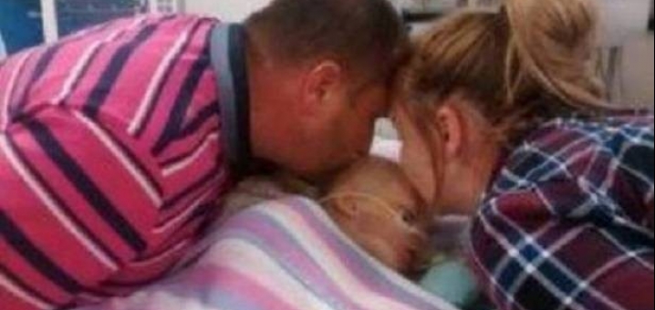 كانا يبكيان بكاء مريراً ويمسكان يدها لآخر مرة. اقترب أحد أقربائهما ليأخذ صورة حتى يتذكر الأهل هذه اللحظة إلى الأبد قبل أن تُفصل الأجهزة عنها.