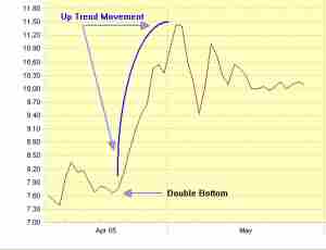 يمثل هذا النموذج حالة السهم عند وصوله لنقطة دعم عنيدة و لم يكسرها مرتين فارتد عنها ، هذا يدل ان هذا السهم اصبح عند خط دعم قوي جداً . ولكن ما يحدث ان بعض المستثمرين البائعين يعتقدون ان السهم وصل الى سعر رخيص لا فائدة من بيعه ، اما المستثمرون المشترون يتفاءلون لرخصه ويتراكضون على شرائه . و هو ايضاً مؤشر على امكانية ارتفاع السهم ليصل الى مستوى مقاومة أخرى مع وجود نموذج القاع المزدوجة يتشكل خوف نفسي عند المستثمر وذلك لان السهم وصل مرتين لنقطة دعم عنيدة ، ولكنه لم يتمكن من اختراق مستوى الدعم وبالنتيجة يرتد السهم ليختبر مستوى مقاومة جديدة .