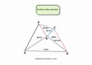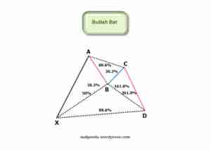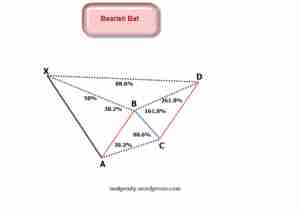 هنا ندرس نوعين من هذه النماذج وسنبدأ بنموذج الخفاش The Bat Pattern وسندرس النماذج من ناحية التكوين الداخلي المميز لكل نموذج نحدد فيها النسب المستخدمة في القطع المستقيمة الموجودة على الرسم البياني الخاص به و هذا النموذج شبيه بنموذج الجارتلي حيث أن ميزته الأساسية أن النقطة D (بداية النموذج) لا تتخطى النقطة X .