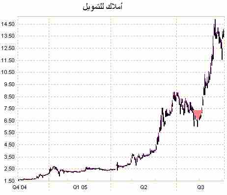 ولكن بالعادة الارتفاع بالمرحلة الأولى هو نفسه ارتفاع المرحلة الثالثة و لذلك أطلق عليها اسم MEASURED ( BULL ) MOVE و يذكر أنه تم تطبيق هذه النظرية على شركة املاك الاماراتية للتموين